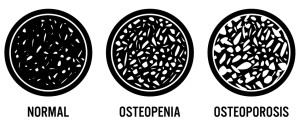 Click image to expand view. Osteopenia (middle) and osteoporosis (right) occur when we lose more bone than we are able to make during normal bone remodeling as we age.