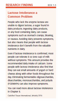 - Disaccharides: lactose found in milk and other dairy products (see Box 1-5, “Lactose Intolerance a Common Problem”)