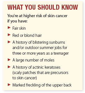 See your dermatologist for an evaluation every year; if you’re at increased risk of skin cancer (see What You Should Know) or have previously had skin cancer, you may need to be seen more often. Melanomas may not look threatening, but the longer they go undetected, the more likely the cancer will metastasize (spread to other areas).