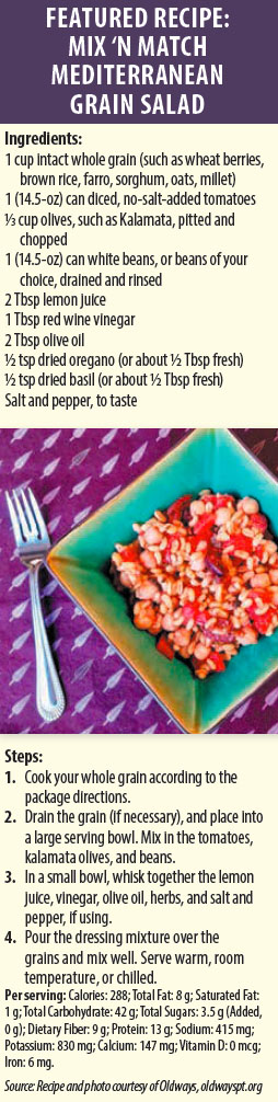 “Legumes are high in dietary fiber and rich in micronutrients, specifically B-vitamins, selenium, potassium, zinc, and vitamins E and A,” says McKeown. “A half cup of legumes delivers, on average, seven grams of dietary fiber, which is a third of the recommended daily value. Importantly, they contain both insoluble and soluble fiber.” Soluble fiber helps decrease blood cholesterol levels and controls blood sugar, and insoluble fiber helps digestion and regularity.