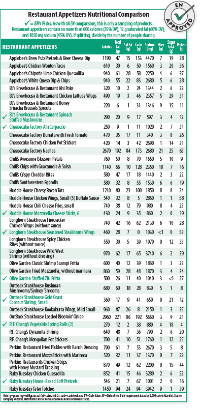 Restaurant appetizers are meant to be little teasers or something to begin to satisfy your appetite before the main course. Unfortunately, many are so full of calories, saturated fat, and sodium that, nutritionally speaking, there’s no room left for the meal. But a few smart choices will allow you to still enjoy some of the mouth-watering treats.