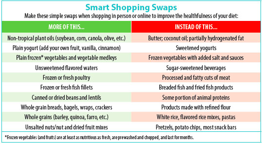 2. Add any staples that are low in the inventory. Be sure to focus on healthy items and avoid less healthy items (see “Smart Shopping Swaps”).