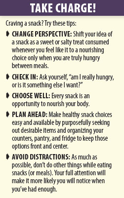 A little planning and mindfulness can make the difference between a high-calorie, low-nutrient, unnecessary snack and an energizing, satisfying, nourishing, necessary between-meal boost.