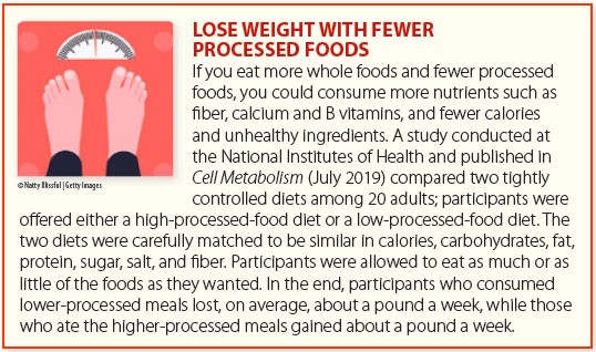 Instead, choose more whole foods and those processed only for convenience (such as baby carrots and frozen foods) or safety. “Nonprocessed and minimally processed foods such as fresh fruit, vegetables, nuts, and beans are easy to spot,” Lustgarten says. “Protein products like whole chicken or fish are minimally processed, while deli meats and sausages have been more heavily processed and should be limited.”