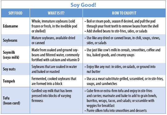 Swap in Soy Foods. Whole, minimally processed soy foods (like edamame, soybeans, soy nuts, unsweetened soymilk, tofu, and tempeh) are the best choices for replacing some of the animal protein you would normally eat. More highly processed products like soy meats, cheeses, and yogurts may be options as well, especially for vegetarian and vegan diets, but watch out for high sodium or added sugar content in these products, as well as in soy sauce, miso, and soy-based ice creams and other desserts. Be aware that soy protein or isoflavone supplements are not proven beneficial, and also that the addition of soy protein to an otherwise unhealthy food does not make it a healthy choice.