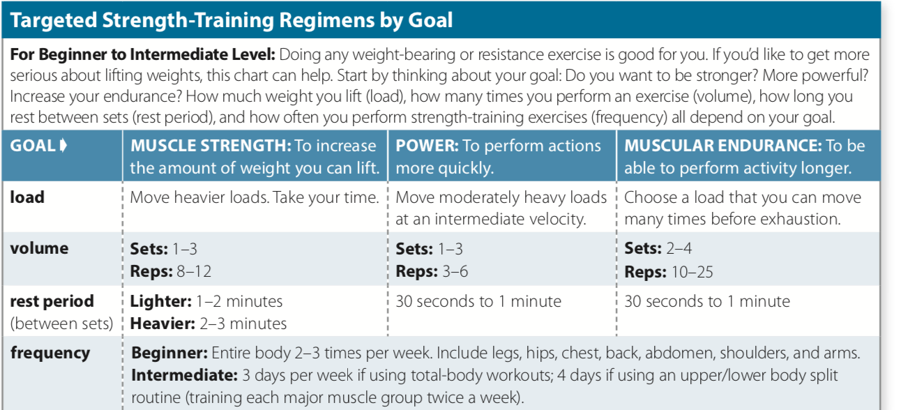 The development of muscle strength and endurance is progressive over time. When what you’re doing becomes easy, add more repetitions. When you can do three sets of 10 to 15 reps fairly easily, it is time to increase the weight or resistance you are using. If it’s been awhile since you’ve worked out, book a few sessions with a physical therapist or personal trainer experienced in working with older adults.