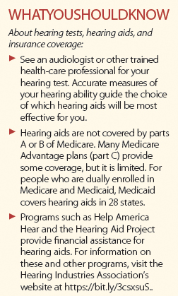 Hearing aids can be expensive: Some cost more than $2,000. But most hearing evaluations are covered by insurance, and some insurers cover some of the cost of hearing aids. Contact your insurance company to find out what your policy covers. Also, many states mandate a trial period for hearing aids during which you may return them for a refund, so try them—you have nothing to lose, and possibly, a great deal to gain.