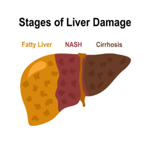 The buildup of fat in your liver is just the first stage of fatty liver disease. This stage can last for many years and it can be revered with lifestyle changes. In about 10 to 20 percent of fatty liver disease, the liver cells become further damaged by inflammation. At this stage the disease is called nonalcoholic associated steatohepatitis or NASH. Steatohepatitis means fatty inflammation. NASH may still be reversible with lifestyle changes but if these changes are not made, the inflammation can lead to scarring of the liver, called cirrhosis. Cirrhosis is not reversible and will lead to liver failure.
