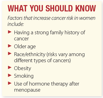 “Cancer is a multifactorial disease, which means that other risk factors also influence whether or not a woman will develop cancer,” explains Dr. Pires. (See What You Should Know for more information on risk factors.)