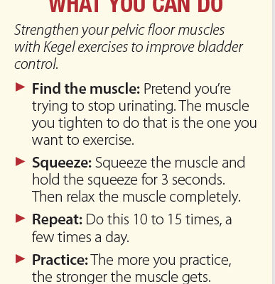 If you are experiencing urinary incontinence, discuss it with your doctor so a personalized treatment plan based on your specific symptoms and circumstances can be established.