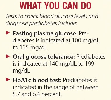 If your blood glucose levels are above normal (5.7 to 6.4 HbA1c) but not high enough for a diagnosis of type 2 diabetes, your condition is considered prediabetes. According to the Centers for Disease Control and Prevention, between 15 percent and 30 percent of people with prediabetes who don’t take steps to reduce their risk will progress to type 2 diabetes during the following five years. Halting that progression is vital since full-blown diabetes can cause circulatory damage, notably in the eyes, kidneys, and toes, which can lead to blindness, kidney disease, and amputation. “Prediabetes is really the same underlying disease as diabetes, and without a change in lifestyle or medication, it will lead to diabetes in many people. Fortunately, good evidence from the Diabetes Prevention Project (DPP) shows that even modest changes in diet, exercise, and weight can lead to prevention of diabetes in many people,” says Keith W. Roach, MD, Associate Professor of Clinical Medicine, Weill Medical College of Cornell University.