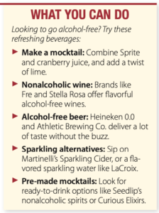 Keeping a journal of how much you drink or swapping alcoholic beverages for “mocktails”can help maintain balance. If you need help modifying your drinking habits, a health-care provider can point you in the right direction.
